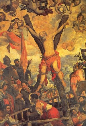 Volvieron los soldados y pudieron atarle a la cruz, pero sin clavarle los miembros ni romperle las articulaciones, tal como había ordenado Egeates para que su calvario fuera más largo, su sufrimiento más intenso.